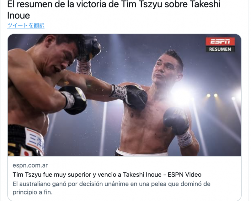 連続KO勝利中の豪腕ティム・チューの攻めに井上は倒れない(ESPN KNOCKOUT Twitterより)
