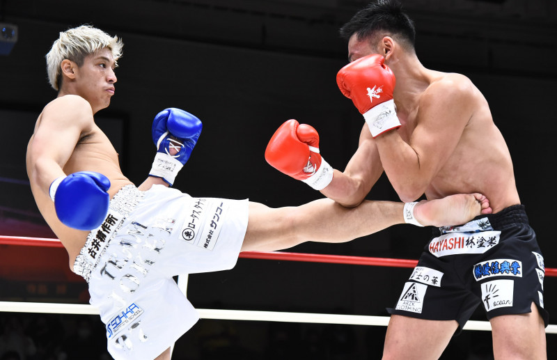 鈴木(右)に右ミドルを見舞う寺島(左)