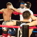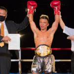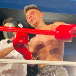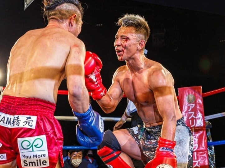 バッティングで両者流血、特に解体屋社長(右)の流血は大きかったが、戦い抜き勝利。健闘を讃えあった
