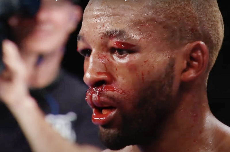 3度目のダウンで顔面血まみれになるフジレ(C)DAZN
