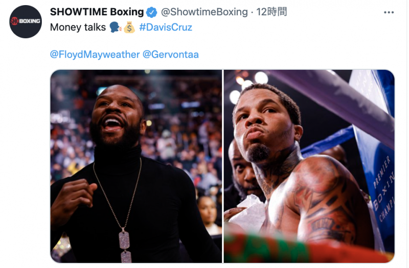 リングサイドでメイウェザーがデービスを応援した(SHOW TIME twitterより)