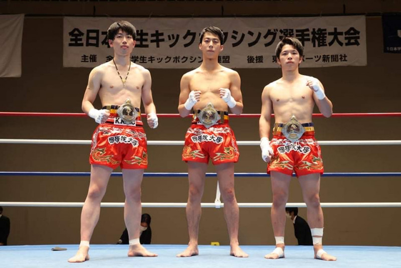 ライト級王者・菅原(左)フェザー級王者・青木(中)、バンタム級王者・松長(右)