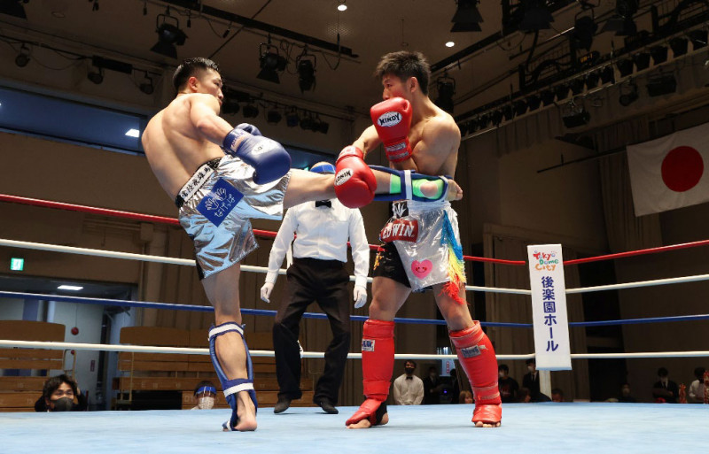元学生キック王者でプロのリングで活躍する秀樹(右・創価大学出身、2012年フェザー級、2013年ライト級)と常陸飛雄馬(左・東海大学出身、2016年、2017年フェザー級)によるスペシャルエキシビションマッチ