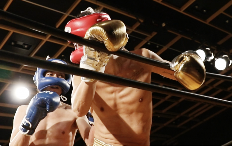 後ろを向きダウンだが、大沢は後ろ蹴りを放った