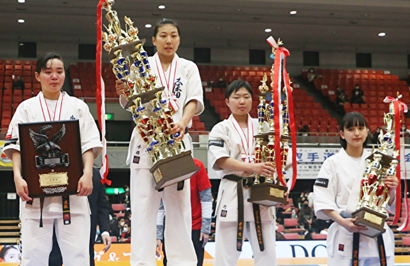 左から、準優勝で敢闘賞も受賞した鈴木、優勝・久保田、3位・水谷、4位には”高速パンチのリケジョ”目代結菜が入った