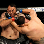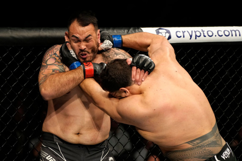 豪腕パンチを当てるマークハント2世のトゥイバサ©️UFC