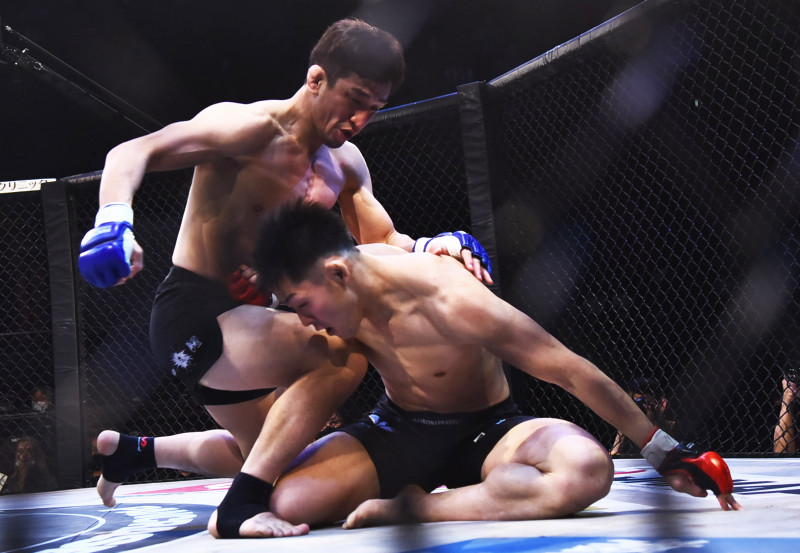 パウンドで追撃する松本