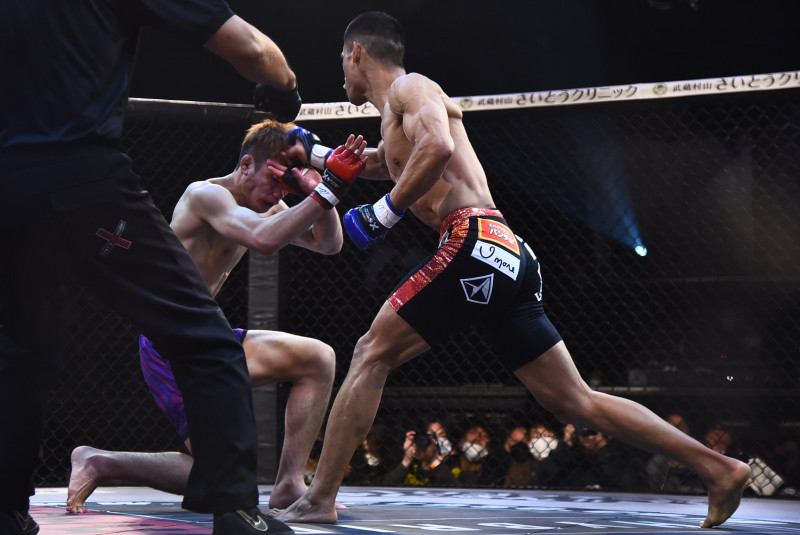 右ストレートを見舞う中島(右)