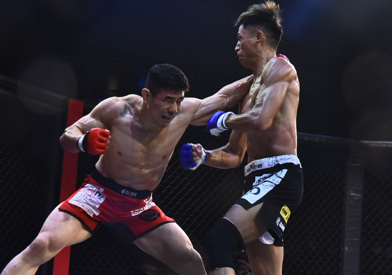 雑賀(右)のパンチでダウンした久米(左)