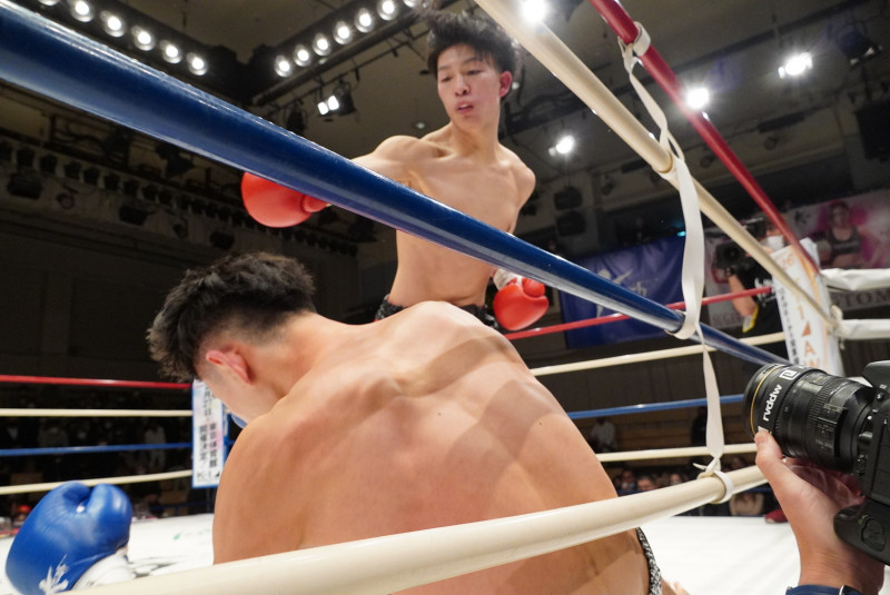 寺田が松山を自慢の拳で倒し倒されの熱戦を制した