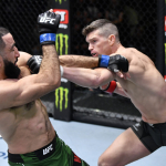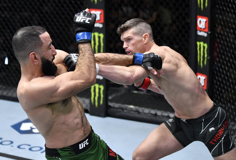スタンド打撃で反撃に転じるトンプソン©️UFC