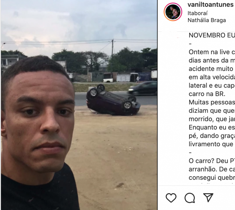 事故直後のアントゥネス。横転する車が生々しい。@vaniltoantunesより
