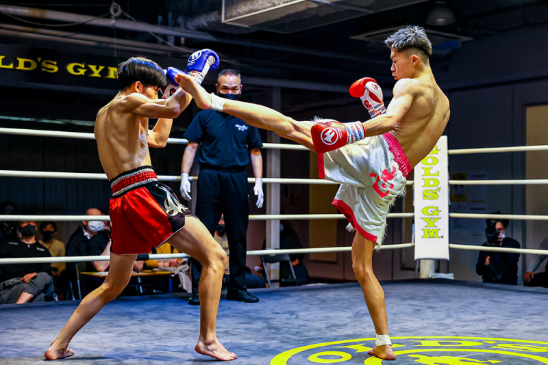 松本(左)から2度ダウンを奪って新人王に輝いた彪司(右)