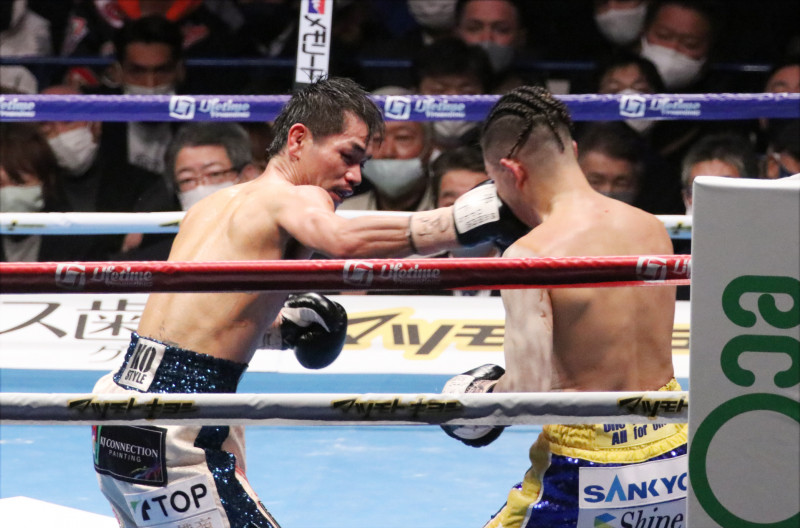 井岡ピンチ、後半ラウンドで福永にコーナーに詰められ被弾、連打される