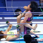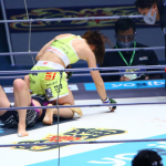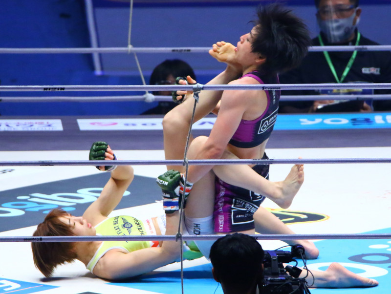 伊澤が下からの蹴り上げをヒットさせる