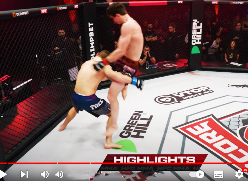 戦慄の“飛びヒザ蹴り”KO!(HFC MMA公式YouTubeより)