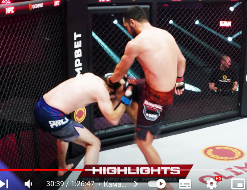 非情な顔面ヒザ蹴り!わずか38秒のKO劇(HFC MMA公式YouTubeより)