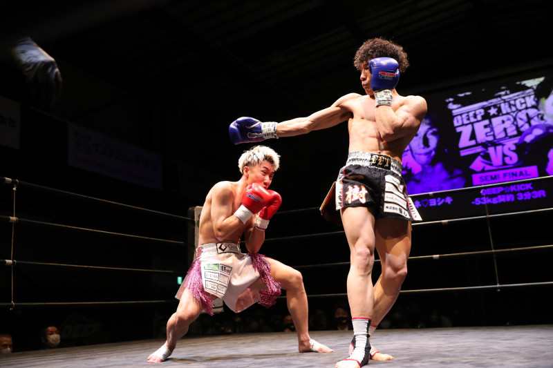 バックハンドブローを繰り出す一樹