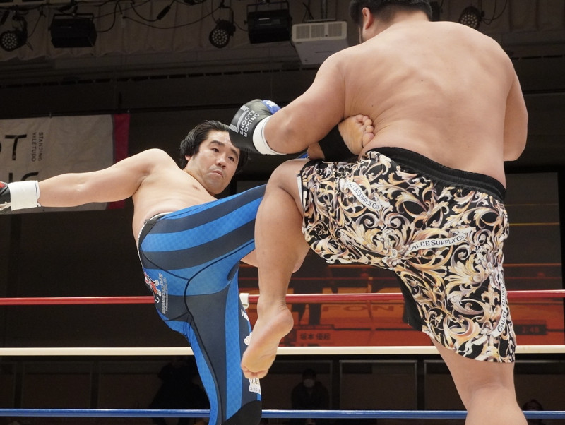 坂本(左)が破壊力満点の重量級マッチを衝撃KOで制した