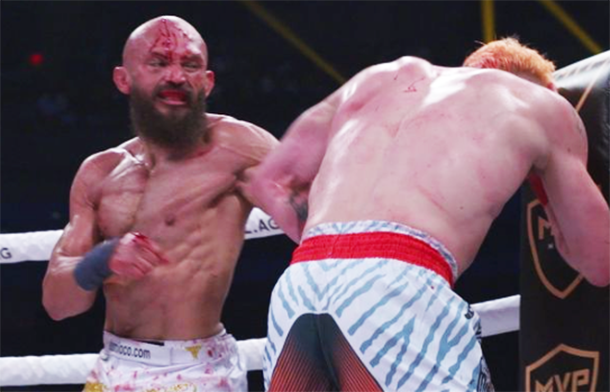 顔面流血のプラザオラが豪快KO!@bareknucklefcより