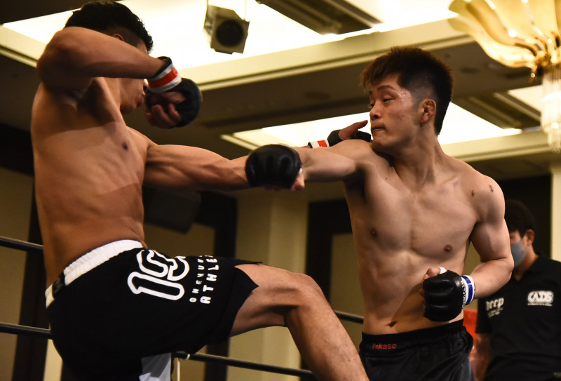 オサモを打撃で追い込む廣瀬(右)