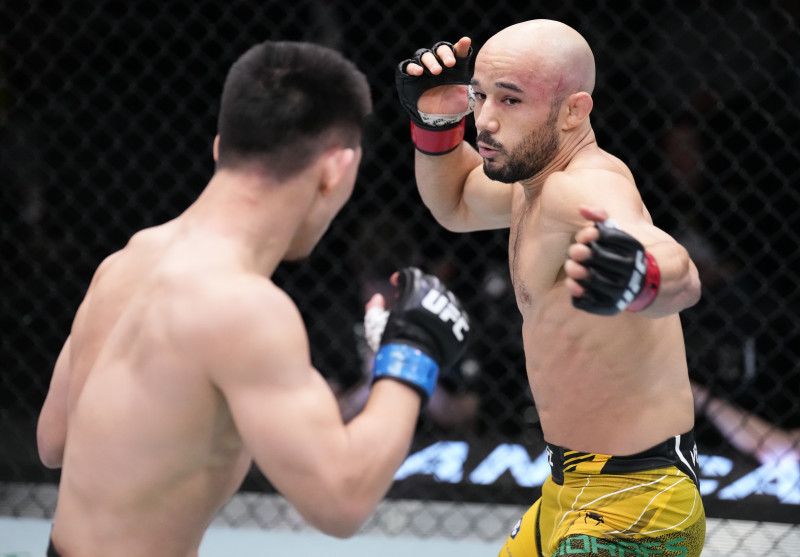 打ち合いに応じるモラエス(右)©️UFC