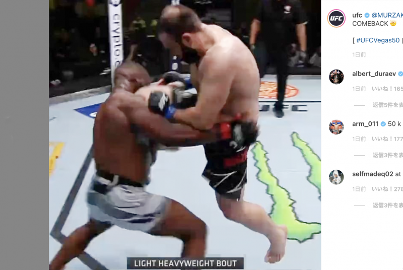 ロシア無敗の強豪ムルザカノフ、逆転の飛びヒザ蹴りKO!(UFCインスタグラムより)