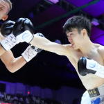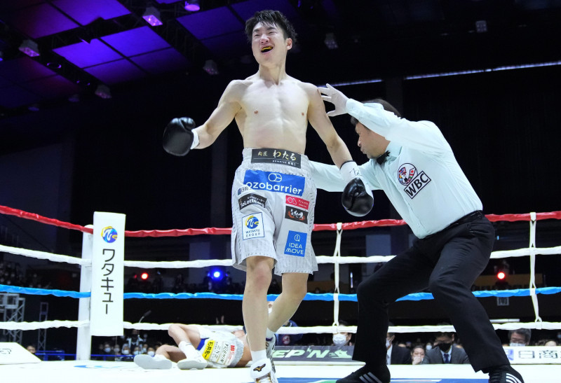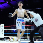 矢吹が大の字にマットに倒れる、拳四朗が豪快KO勝利(Naoki Fukuda)