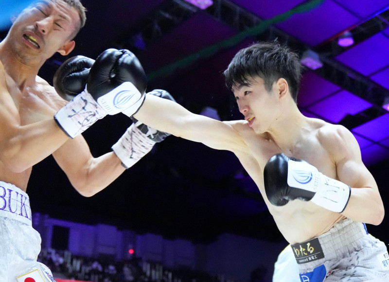 寺地拳四朗が3R、右ストレートで王者・矢吹をKOで沈めた(Naoki Fukuda)