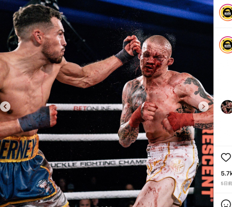 顔面流血の壮絶パンチ!@bareknucklefcより