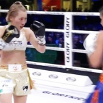 小林愛三(左)が女王ヴァン・スースト(右)とフェイスオフ©️GLORY