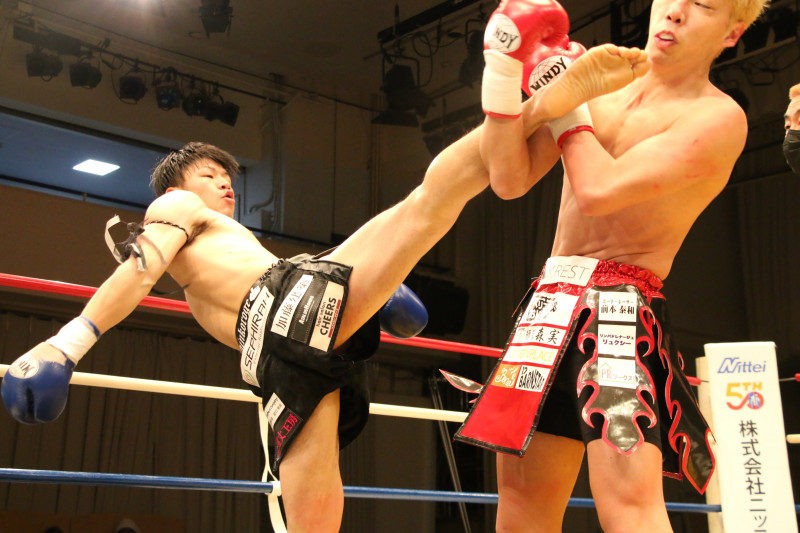 中尾(左)はカウンター攻撃を中心にして戦い、判定勝ちを収めた