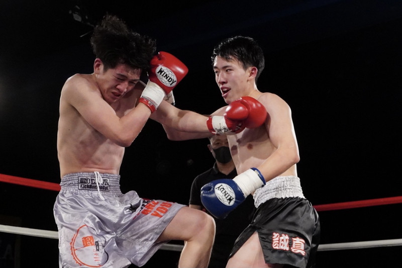 正哉(右)が判定勝ち、果敢にパンチで攻めた