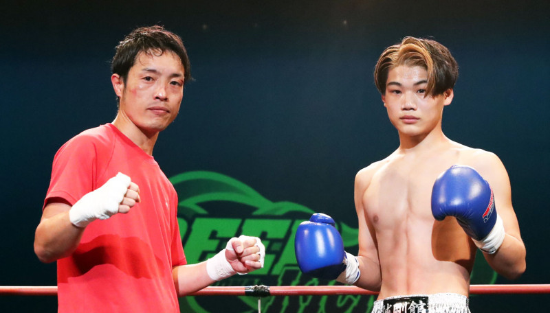 決勝で対戦が決まったKAZUNORI(左)と長谷川海翔