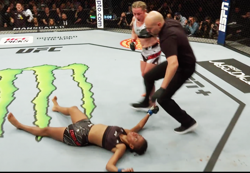 会場爆発の逆転KO劇!回転バックエルボーで相手は失神ダウン(UFC Fight Passより)