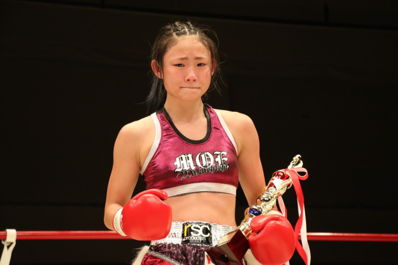 延長ラウンドで勝利をものにしたMOEは涙を流して喜んだ