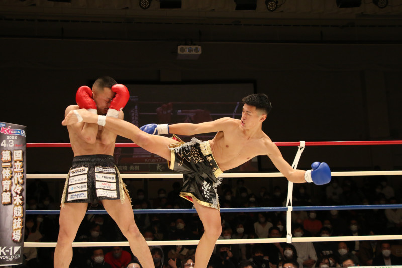 石田(右)はパンチに蹴り技にアクセント入れながら追い込んでいった
