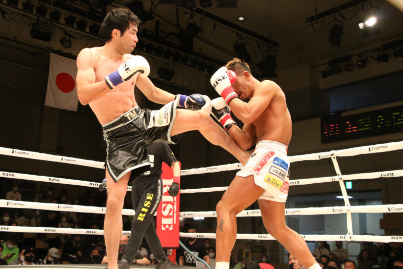 森田崇文(左)は宮城のパンチを蹴りで封じて勝利