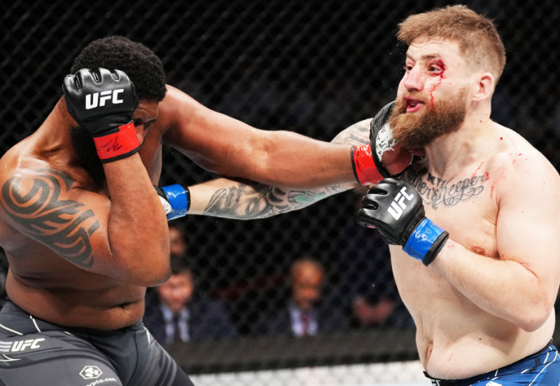 ブレイズ(左)の強烈なジャブを被弾するドーカス(右)©️UFC
