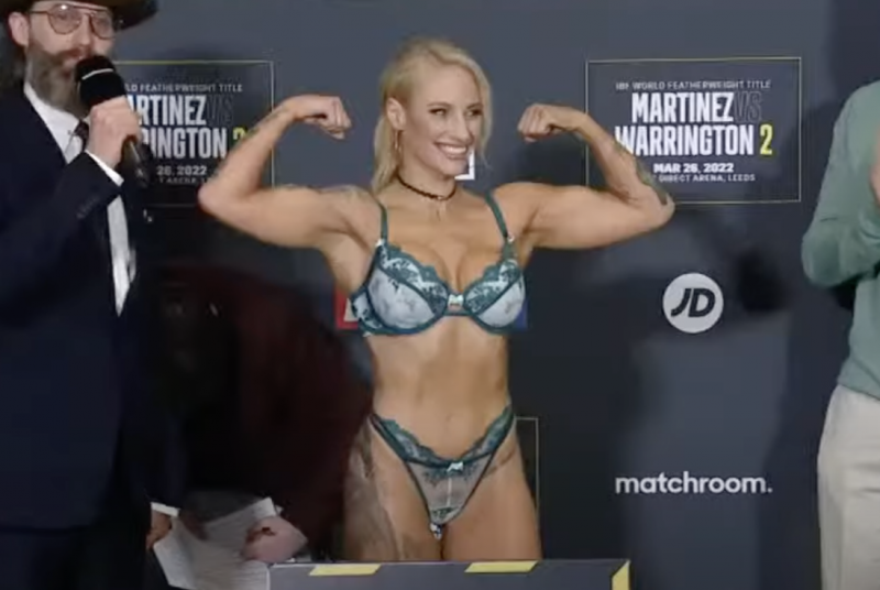 今回の計量でもランジェリー姿で沸かせたエバニー・ブリッジス(C)DAZN