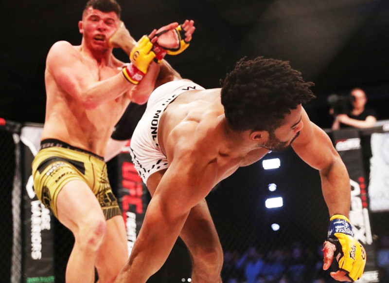 “カポエイラ”風の蹴りでド派手なKO!©️Cage Warriors