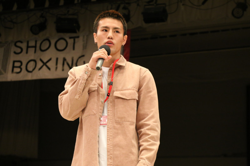 会場でウクライナ支援のチャリティに参加していた海人がリング上で挨拶した