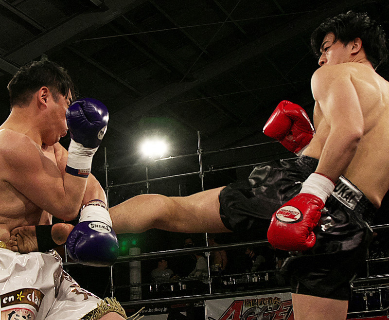 小野寺の強烈なミドルが炸裂、ボディを効かせ最後は膝蹴りで沈めた
