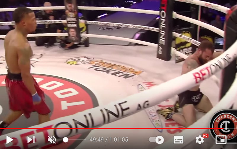 ロープ側でダウンするマルティネス@BKFC公式YouTubeより