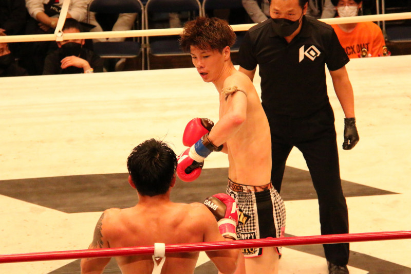 M-1日本王者のREITO(上)がM-1世界王者スアレックにKO勝利し下克上達成