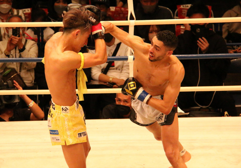 ジライフィ(右)の飛び込むような変則パンチに苦しんだ龍聖(左)