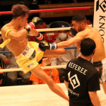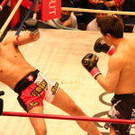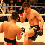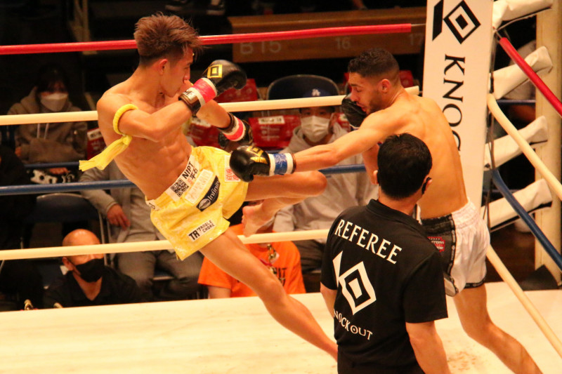 龍聖が二段蹴りで攻める