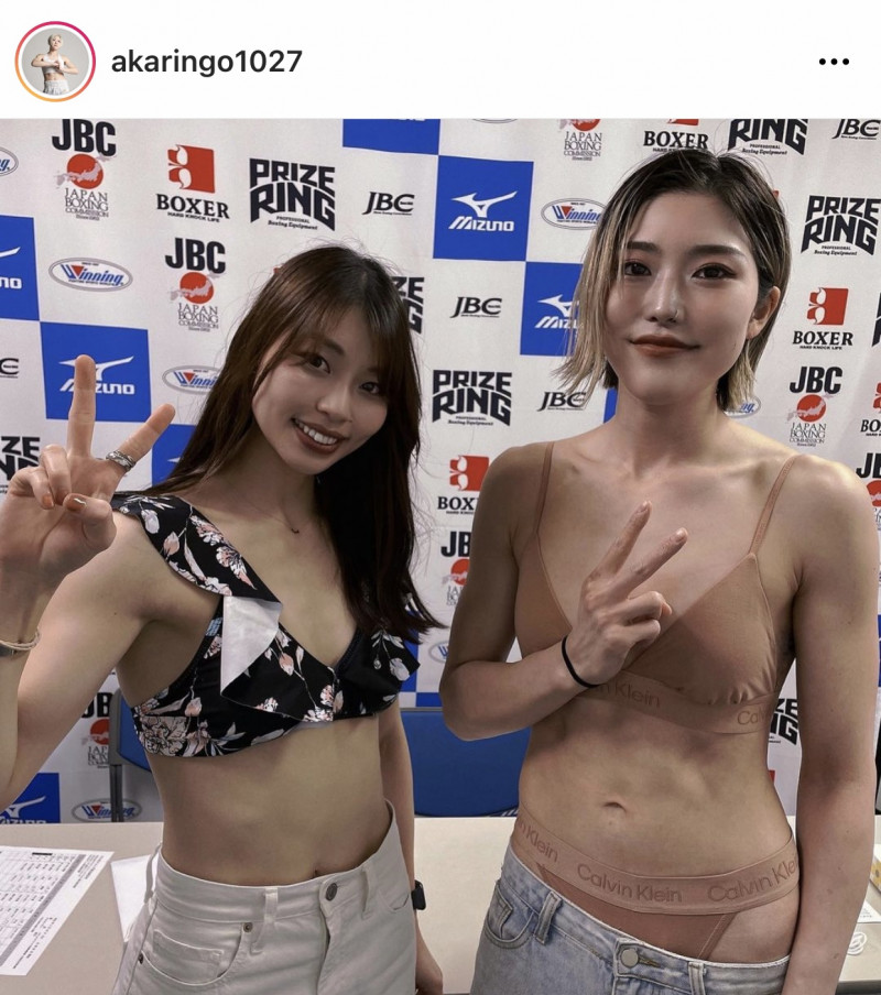 同門の伊賀薫(左)とのビューティーボクサーペア 伊賀は同日アトム級王座を獲得した