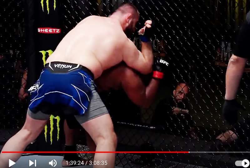 後頭部に肘打ちを貰うバーネット(UFC公式YouTubeより)