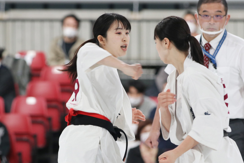 佐藤七海(左)は小柄ながら肘を上げ叩き落とすパッキャオ のようなパンチを放つ。以前から自身で開発した得意技だ